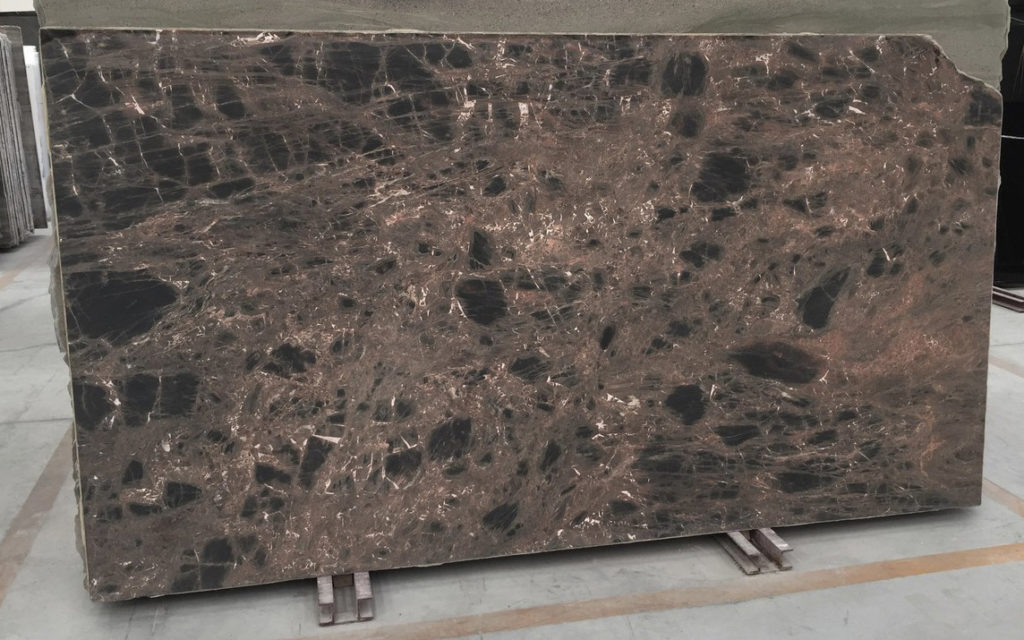 Marron Bois has a very particular look which is characterized by a twist of various brown shades, with black feldspars and fine white veins.